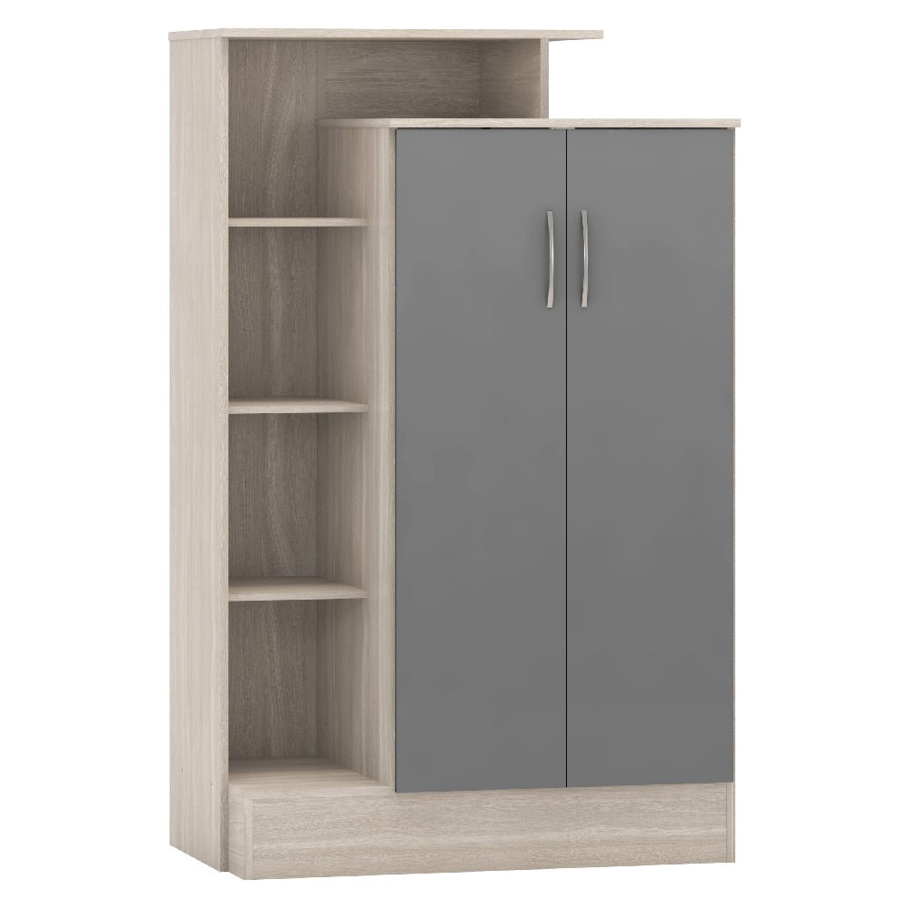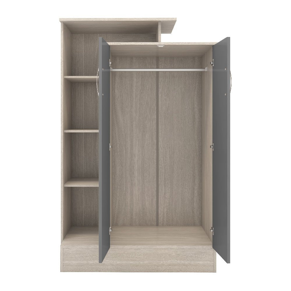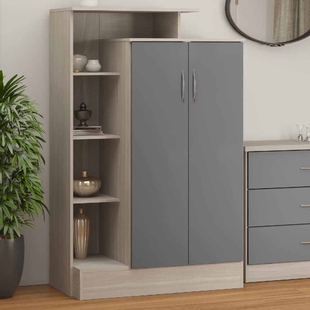 CHOICEWARDROBE Mack 100cm Grey & Oak Wooden 2 Door Wardrobe is a compact yet intelligently designed storage unit, created for modern bedrooms where style, balance, and efficient organisation matter. Combining a refined grey gloss front with warm oak detailing, this wardrobe delivers a contemporary look without overpowering the space.