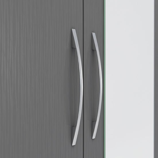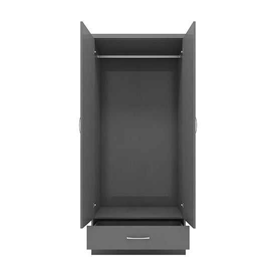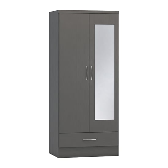 CHOICEWARDROBE Mack 78cm 2 Door Mirrored Wooden Wardrobe – Grey Finish with Drawer & Hanging Rail Storage
