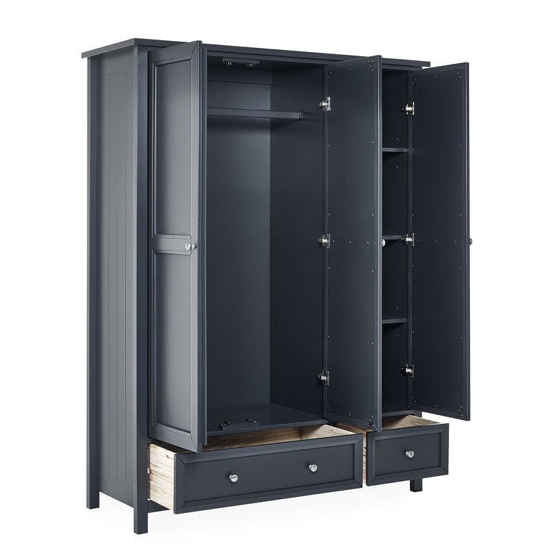 Cheshire 3 Door 3 Drawer Wardrobe – Soft Grey Shaker Elegance