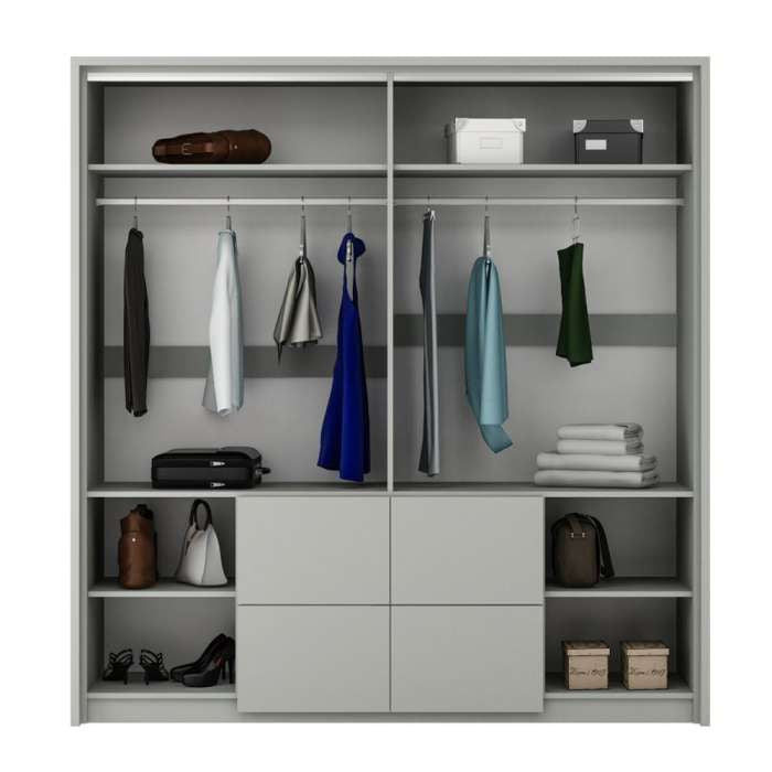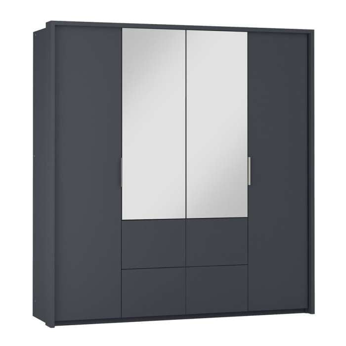NORVYN 2 Door Mirrored Wardrobe with 4 Drawers Grey - 208cm