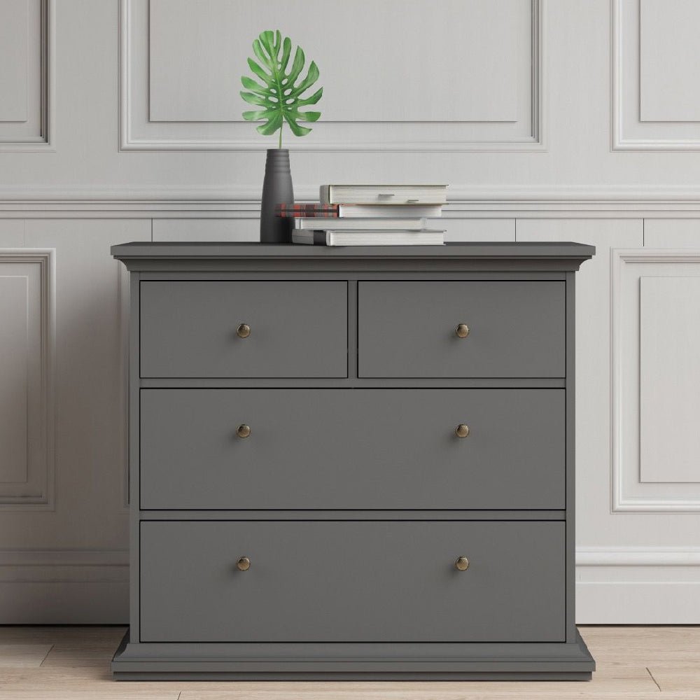 Introduce timeless elegance and practical organisation to your bedroom with the CHOICEWARDROBE Parayo 3 Piece Bedroom Furniture Set. Finished in sophisticated charcoal grey, this Shaker-inspired suite combines clean lines, brass handles, and durable craftsmanship to create a stylish yet functional storage solution for everyday living.