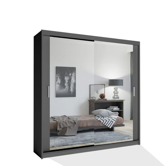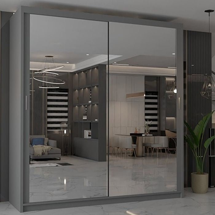 CHOICEWARDROBE CHICAGO II 2 Door Sliding Door Wardrobe Grey Mirrored Doors 203 cm