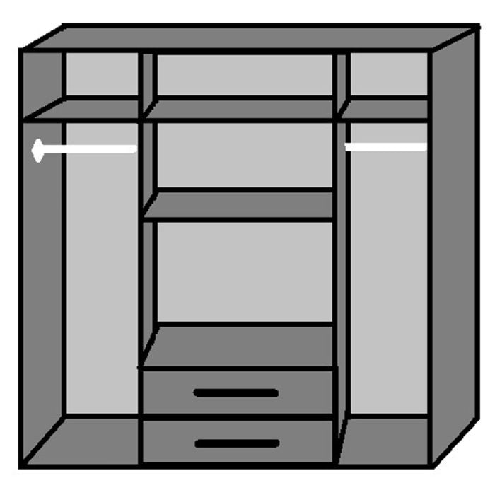 The DAYTON 4 Door 2 Drawer Wardrobe offers a combination of hanging, shelving and drawer space. The wardrobe has trendy long handles along with the 2 centre doors being mirrored which give the wardrobe a modern look.This robe gives you 3 different areas of storage. The centre section is divided with 2 drawers at the bottom and 2 shelves behind the 2 mirrored doors, the 2 outer sections are fitted with a single shelf and hanging rail in each. This product is designed, built and constructed to a high standard and is subject to full quality checks before leaving the factory to ensure a consistent standard of product.