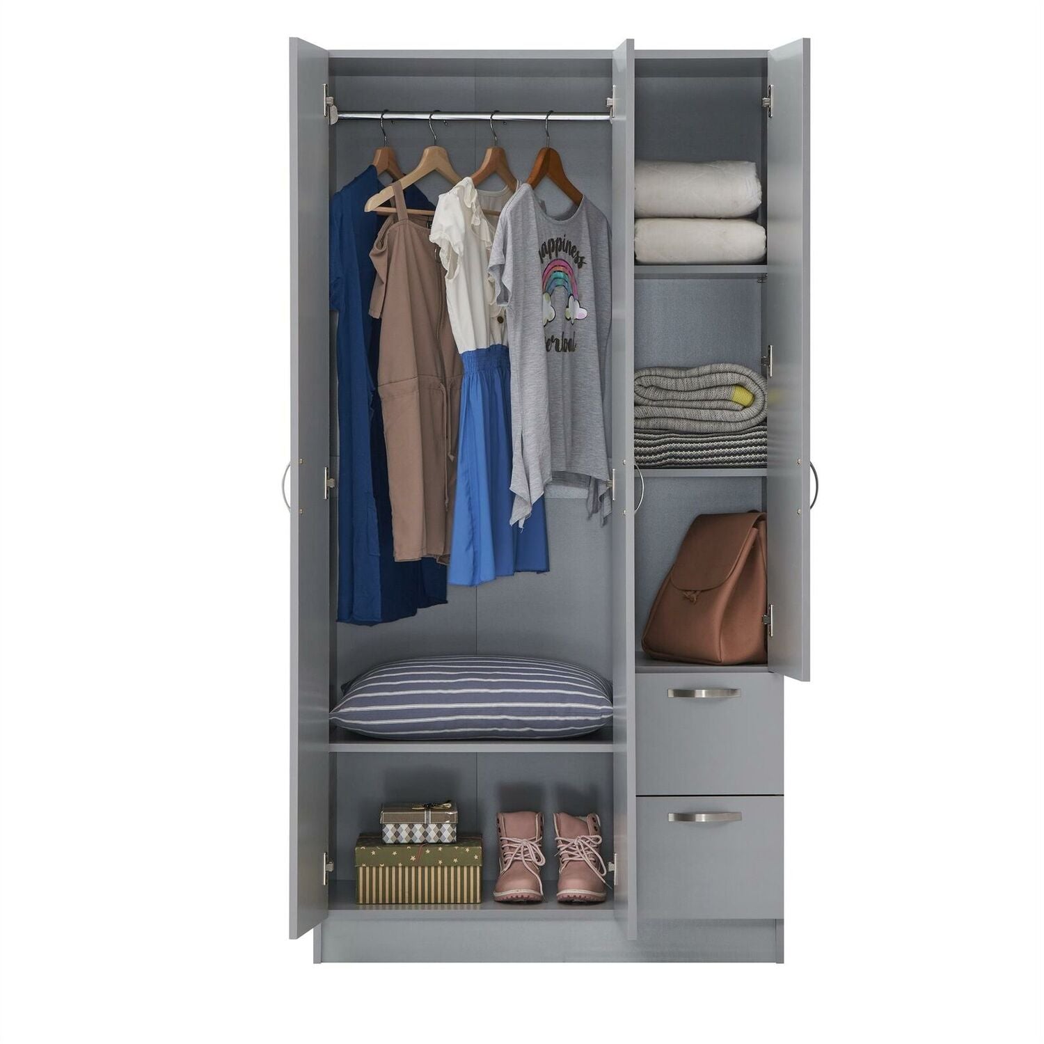 Designed for practical bedrooms that require structured storage, this 3 Door 2 Drawer Wardrobe combines hanging space, drawer storage, and a compact footprint. Finished in a contemporary Grey tone, it delivers a balanced, neutral presence suitable for modern and transitional interiors.
