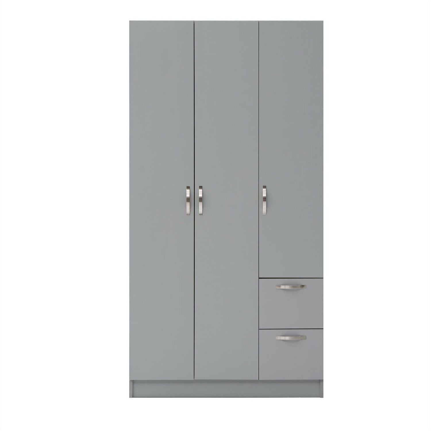 Constructed from durable laminated particle board, this wardrobe is designed for everyday residential use. Metal handles provide a subtle contrast against the grey finish, while the structure supports long-term storage reliability.