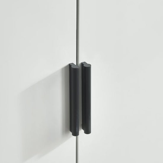 Its clean vertical form and compact width make it particularly well suited to standard bedrooms, guest rooms, and apartments where efficient use of space is essential without sacrificing visual presence. Subtle contrast is added through understated black handles, giving the wardrobe definition without overpowering the design.