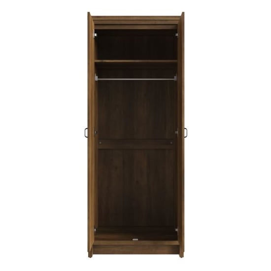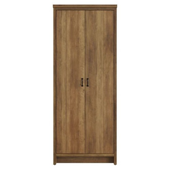 Bring natural texture and timeless craftsmanship to your space with the CHOICEWARDROBE Nolan Knotty Oak 2 Door Wardrobe. Designed with a rich, rustic knotty-oak finish and sleek black metal handles, it blends farmhouse charm with modern urban design for a statement of both strength and sophistication.