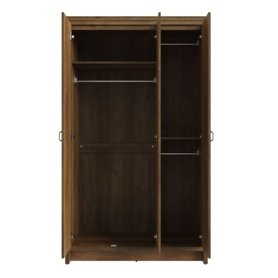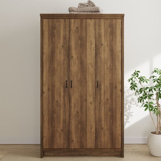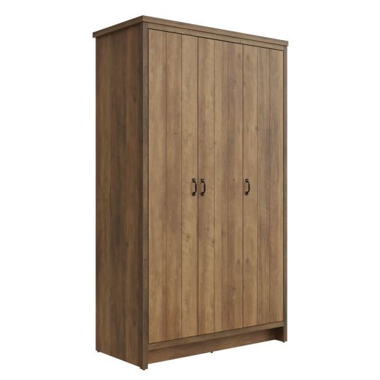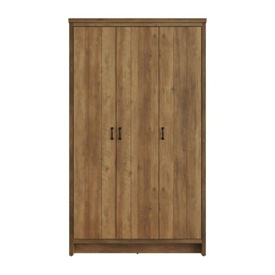 Bring authentic rustic character into your bedroom with the CHOICEWARDROBE Nolan Knotty Oak 3 Door Wardrobe. Featuring a rich knotty-oak texture, bold black metal handles, and sturdy industrial detailing, this wardrobe perfectly balances farmhouse warmth with urban sophistication.