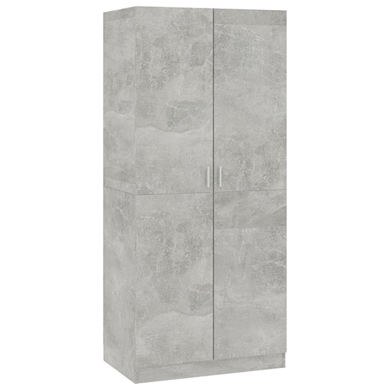 Carlow Wooden Wardrobe With 2 Doors In Concrete Effect, This compact wardrobe makes your clothes or daily accessories easy to access. It will provide a perfect storage solution and add chic touch to your existing home.