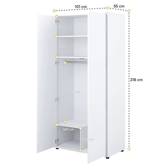 CHOICEWARDROBE Cyan 2 Door Hinged Wardrobe – White, 101cm Width