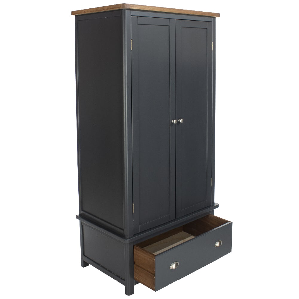 The internal layout is designed to balance hanging and drawer storage, allowing you to organise clothing efficiently without wasting space.
