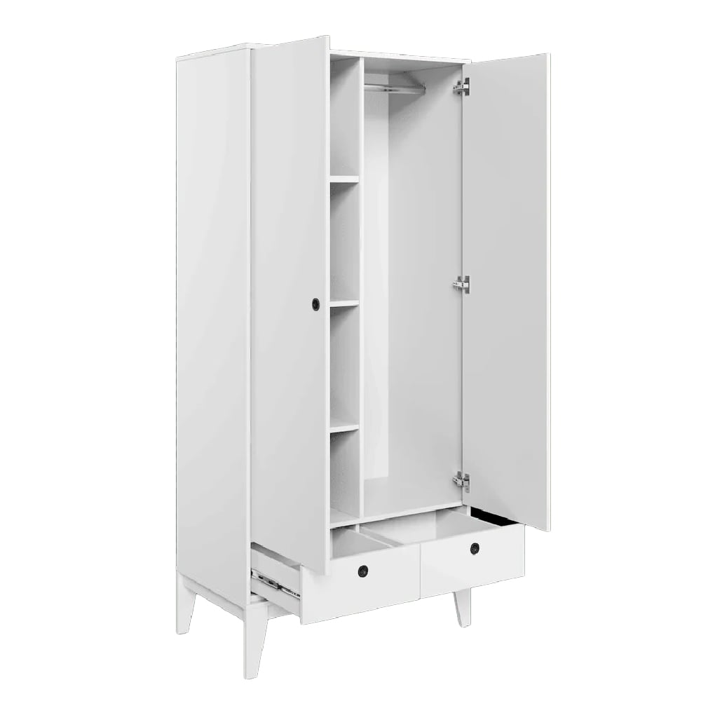 The Fletcher wardrobe uses clean lines and a soft white finish to maintain a calm visual profile. The matt surface reduces glare and is easy to maintain, making it suitable for daily use in busy bedrooms or secondary storage spaces.