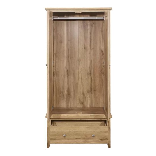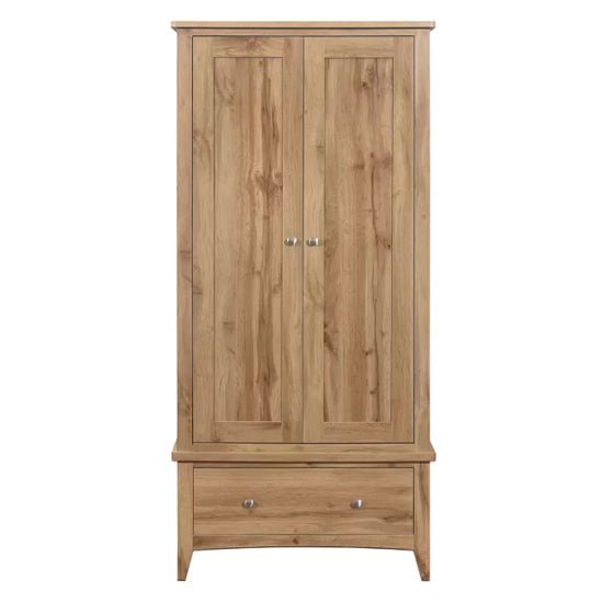 The Hebron Wooden Wardrobe with 2 Doors and 1 Drawer in Oak is a refined storage piece that blends classic character with everyday practicality. Designed by Furniture in Fashion, this wardrobe brings warmth and structure to the bedroom through its natural oak finish and timeless proportions.