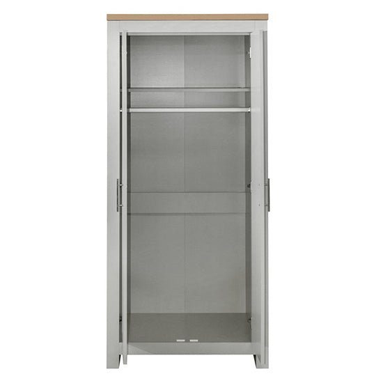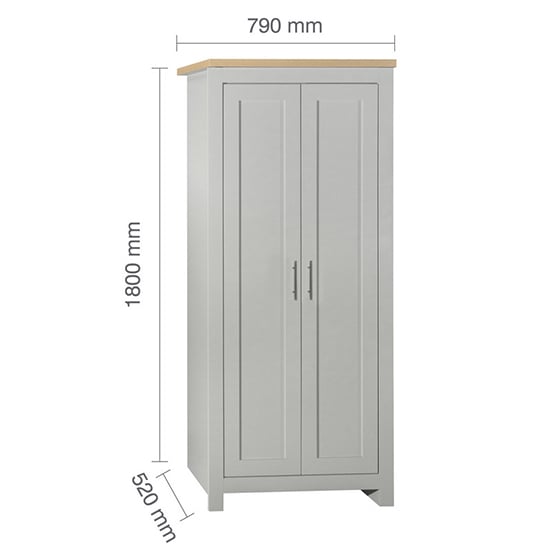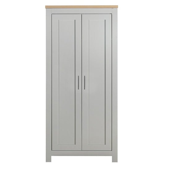 CHOICEWARDROBE Highgate 2 Door Wardrobe – Grey with Oak Top | Compact Modern Bedroom Storage 79cm