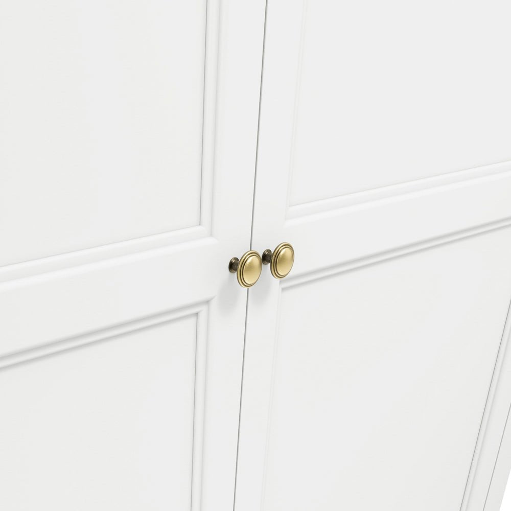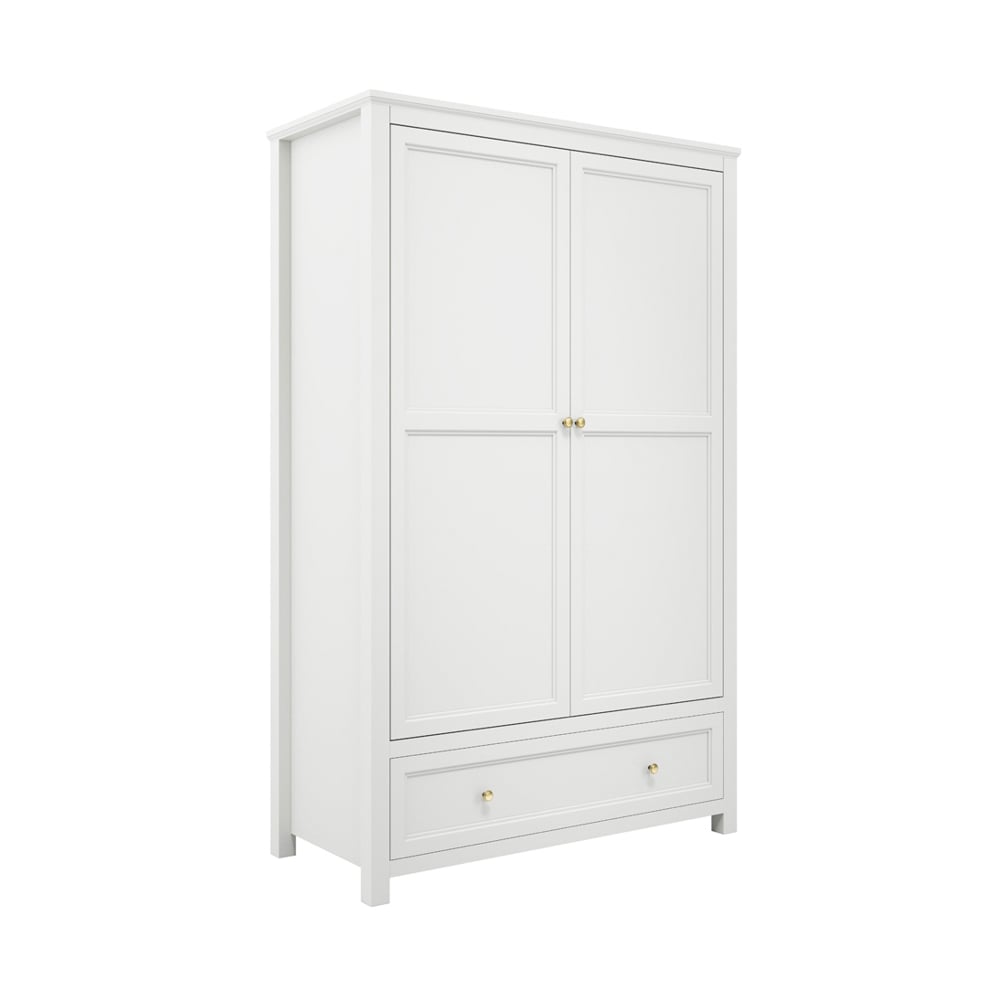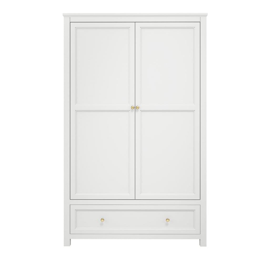 What does the white finish with gold handles add to a classic two-door wardrobe?