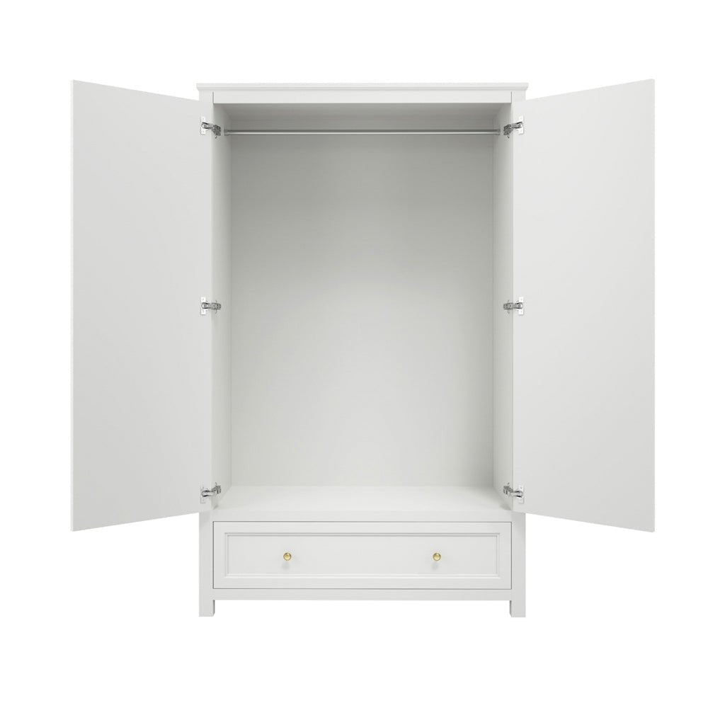 The CHOICEWARDROBE Iowa 2 Door Wardrobe with Drawer – White is a refined storage solution designed to bring structure, elegance, and everyday practicality into the modern bedroom. Finished in a crisp white tone and detailed with panelled styling, this wardrobe balances timeless design with functional organisation.
