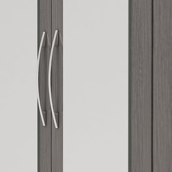 Its dark wood grain surface creates a premium, contemporary aesthetic while the mirrored doors enhance light and add visual space to any room. Perfect for master bedrooms, dressing rooms or premium guest spaces.