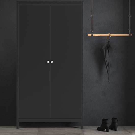 The CHOICEWARDROBE Macron 2 Door Wooden Wardrobe delivers clean architectural presence with a restrained, modern edge. Finished in a deep matt black tone, this wardrobe is designed for contemporary bedrooms where simplicity, proportion, and usability matter more than decoration.