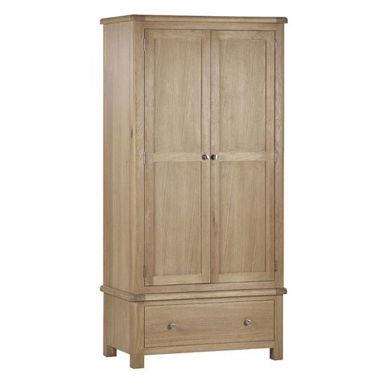 CHOICEWARDROBE Norland Limed Oak 2 Door Wardrobe | Classic Wooden Wardrobe with Drawer – Country Farmhouse Style