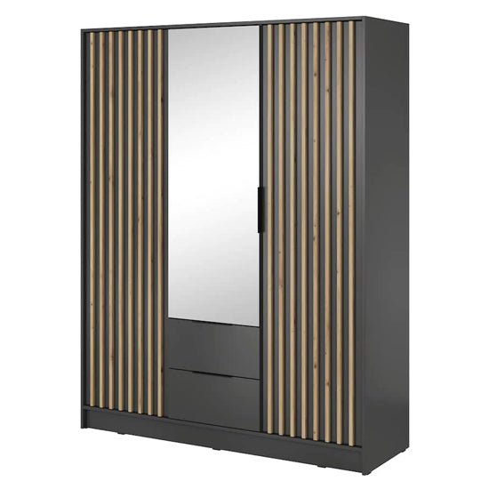 Newberry 155cm Mirrored Wardrobe – Graphite & Oak Slat Contemporary Design