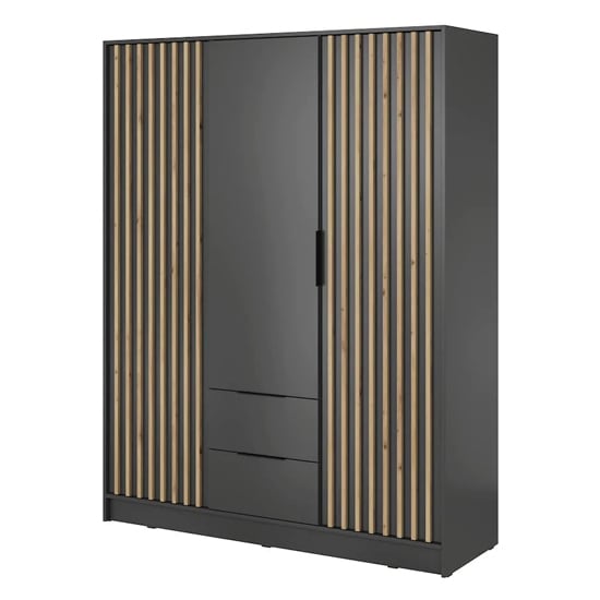 Newberry Wooden Wardrobe with 3 Hinged Doors, elegantly designed in a sleek Graphite finish. This wardrobe is a stylish and practical addition to your bedroom, offering both form and function. The Graphite finish adds a touch of modern elegance, making it a versatile piece that can complement various interior styles. With three hinged doors, this wardrobe provides ample storage space for your clothing, accessories, and other items. Its 155cm width ensures plenty of room to keep your wardrobe organized. The Newberry Wooden Wardrobe in Graphite is a versatile and eye-catching piece that helps you keep your bedroom tidy. Elevate your bedroom decor with this exquisite wardrobe and experience the perfect fusion of style and functionality in your living space.