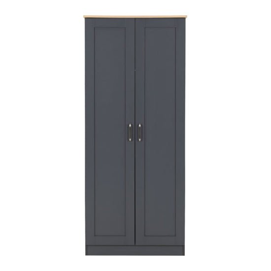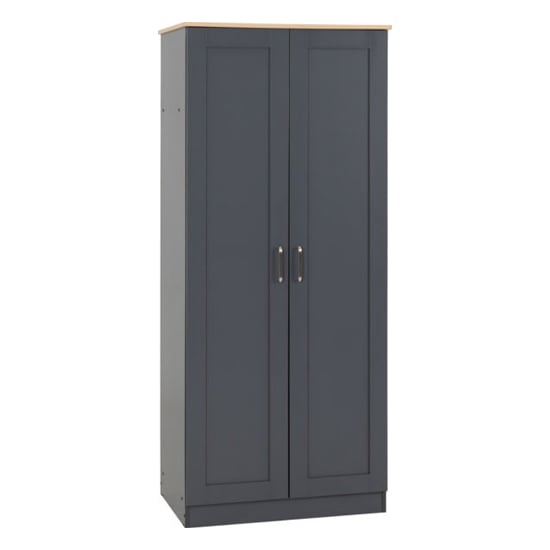 CHOICEWARDROBE Parnu 2 Door Panelled Wooden Wardrobe – 80cm Charcoal Grey with Oak Effect Top | Modern Compact Storage with Hanging Rail & Shelves
