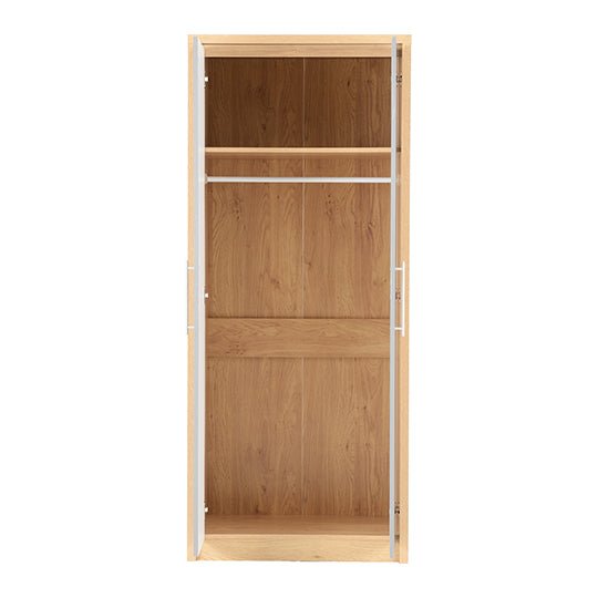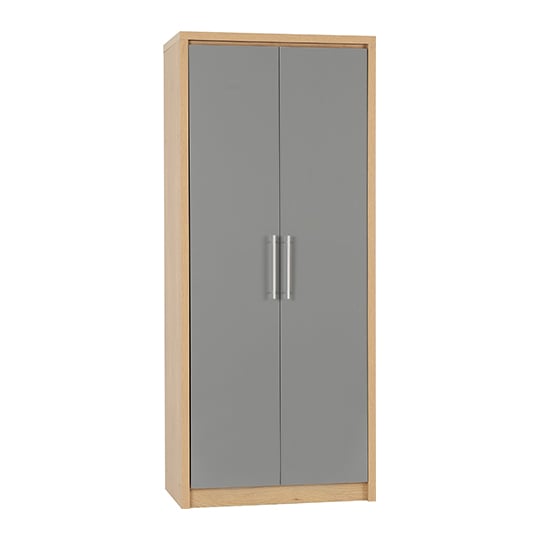 CHOICEWARDROBE Samaira Grey Gloss 2 Door Wardrobe with Oak Effect Frame – Slim Modern Design, Hanging Rail & Shelf Storage