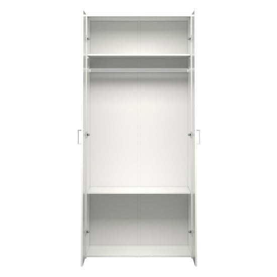 - Two-door wooden wardrobe in clean white finish
