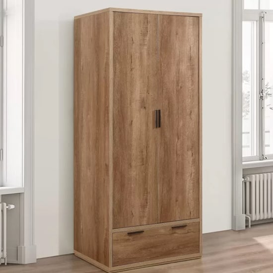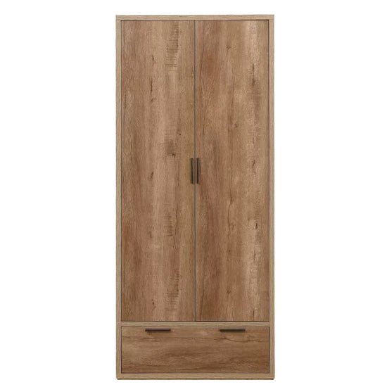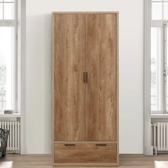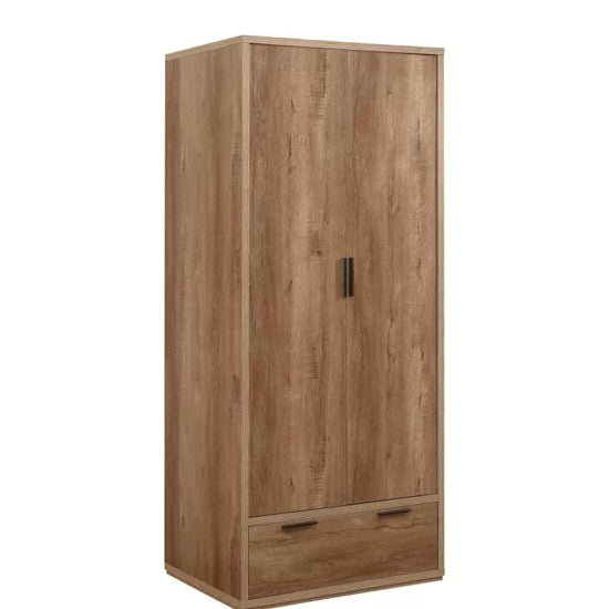 The CHOICEWARDROBE Stock Wooden Wardrobe is an ideal solution for buyers seeking a compact two-door wardrobe with integrated drawer storage, finished in rustic oak for a grounded, practical bedroom environment.