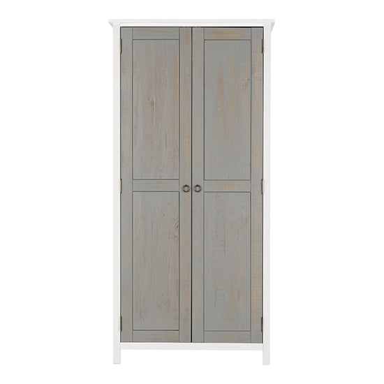 Wooden Wardrobe With 2 Doors In White And Grey