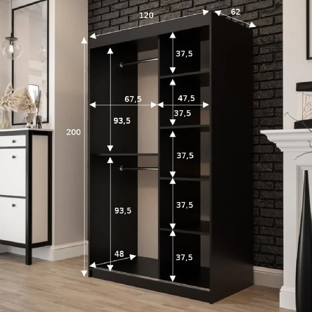 Built from 16mm high-quality laminated board with reinforced edges, this wardrobe offers lasting durability and an easy-to-clean surface. The contrasting black handles and trim provide a stylish industrial edge that complements both minimalist and modern bedroom themes. The Topeka 120cm Sliding Wardrobe combines functionality, elegance, and craftsmanship to deliver the perfect storage solution for today’s home.