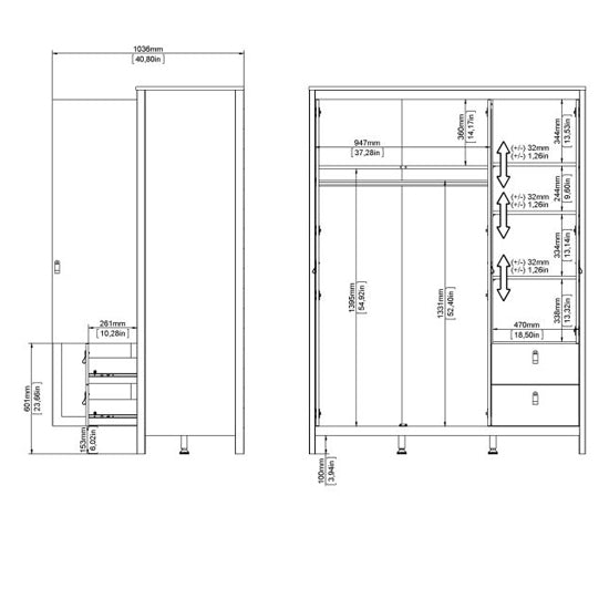 - 🧺 3 Doors + 2 Drawers – spacious compartments for hanging, folding, and accessory storage