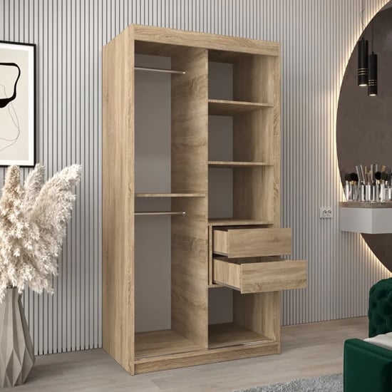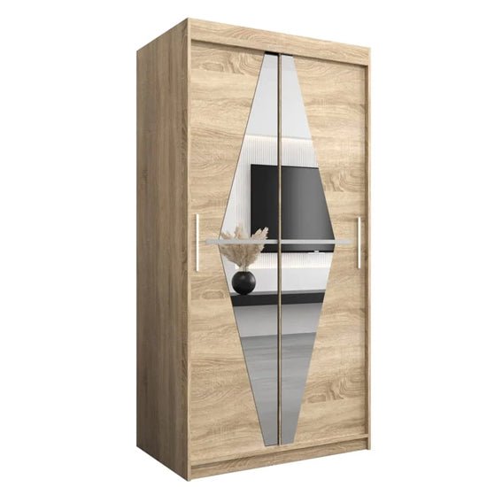 The Sonoma Oak finish adds warmth and natural character, while the mirrored doors enhance light and improve the sense of space — particularly valuable in smaller bedrooms.