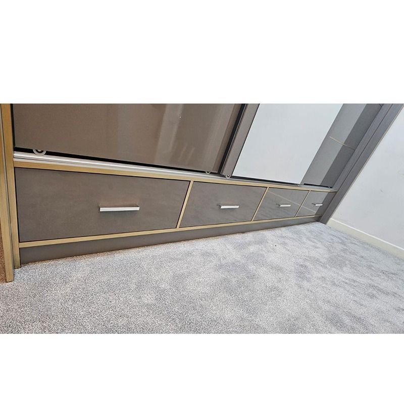 Finished in a high-gloss grey with integrated mirrored panels and gold-accent detailing, the Luxembourg introduces a composed, luxury-led aesthetic while maintaining clean geometry and practical usability.