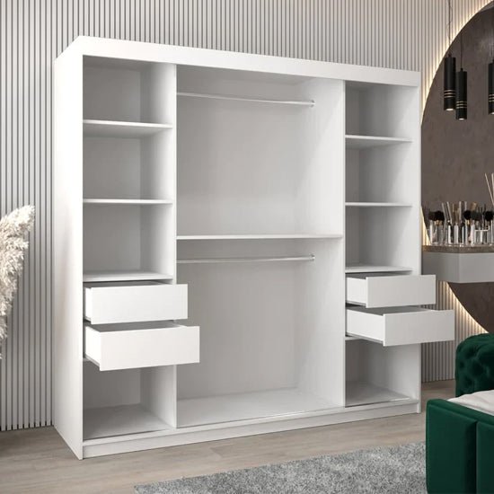 CHOICEWARDROBE Tavira I Mirrored Wardrobe 2 Sliding Doors 200cm White Mirror Doors