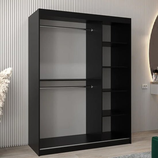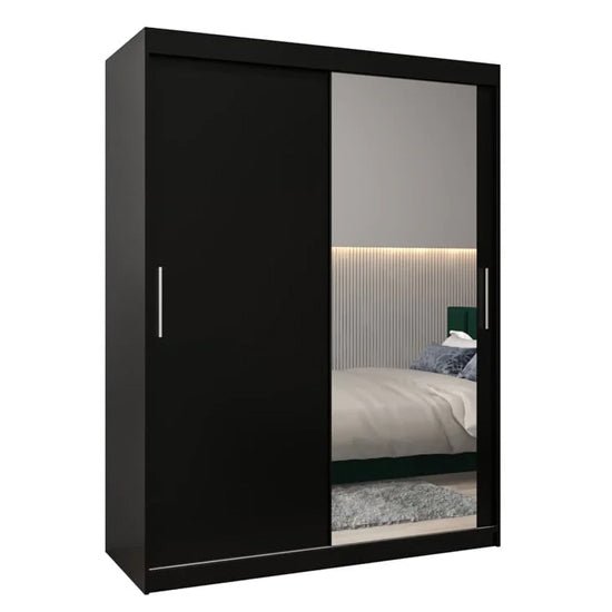 The CHOICEWARDROBE Tavira II Mirrored Sliding Wardrobe is a refined storage solution designed for bedrooms where space efficiency and visual clarity matter. Finished in a deep black tone with an integrated mirrored sliding door, it delivers modern balance while enhancing light and perceived room size.