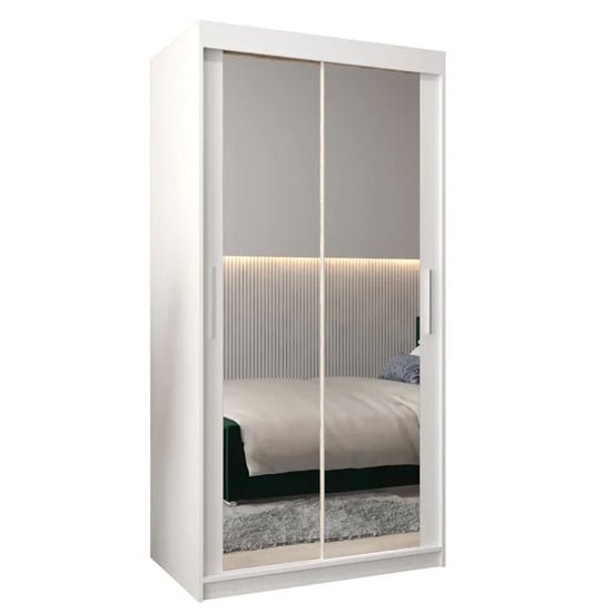 Tavira III Mirrored Wardrobe 2 Sliding Doors 100cm In White