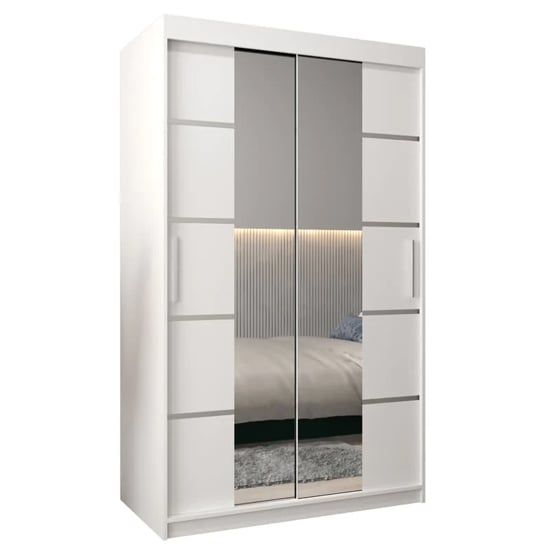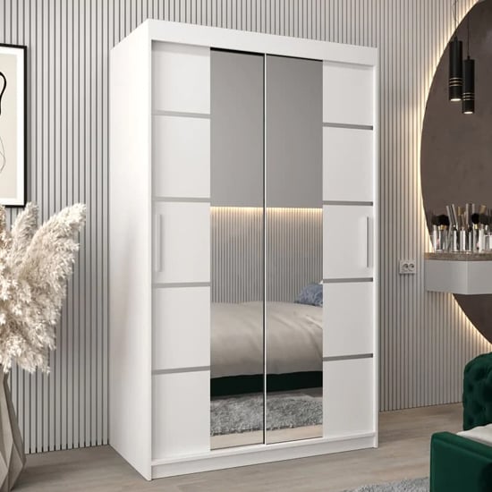Refine your bedroom with the CHOICEWARDROBE Vevey 2 Door Mirrored Sliding Wardrobe — a stunning balance of modern elegance and everyday practicality. Finished in crisp white laminate with chrome detailing, this 120cm wardrobe introduces a sense of brightness and luxury to your space. The full-length mirrored doors not only enhance light and depth but also create the illusion of a larger, more open room.
