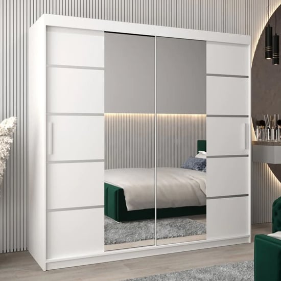 The CHOICEWARDROBE Vevey III Mirrored Sliding Wardrobe is a large-format storage solution engineered for modern UK bedrooms that demand generous capacity, clean aesthetics, and efficient use of space. Finished in crisp white with full mirrored sliding doors, it delivers visual brightness while maintaining architectural restraint.