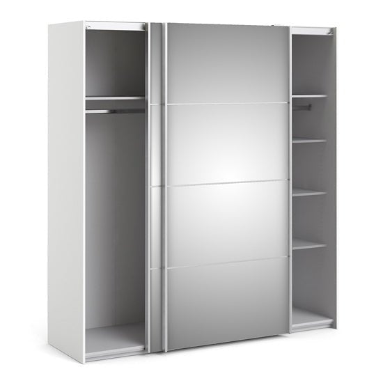 - White finish with full-length mirrored sliding doors