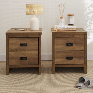Highland Wooden Bedside Cabinet With 2 Drawers In Grey And Oak