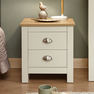 Highland Wooden Bedside Cabinet With 2 Drawers In Cream And Oak