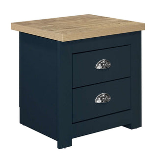 Highland Wooden Bedside Cabinet With 2 Drawers In Navy Blue And Oak