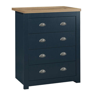 Highland Wooden Chest Of 4 Drawers In Navy Blue And Oak