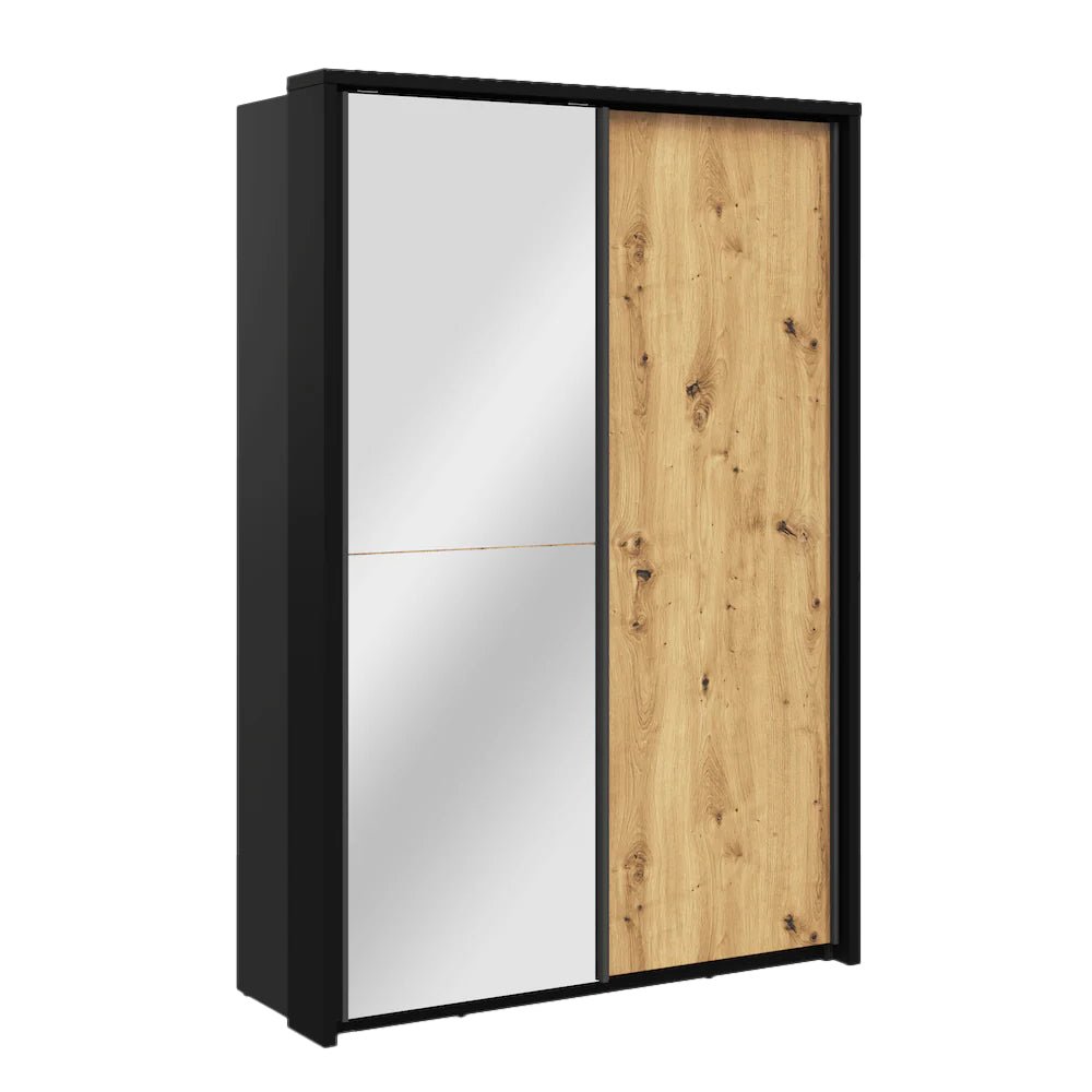 CHOICEWARDROBE Allen 160cm Sliding Door Wardrobe – Black Frame With Sonoma Oak Doors Finish, 2-Door, Mirror Door