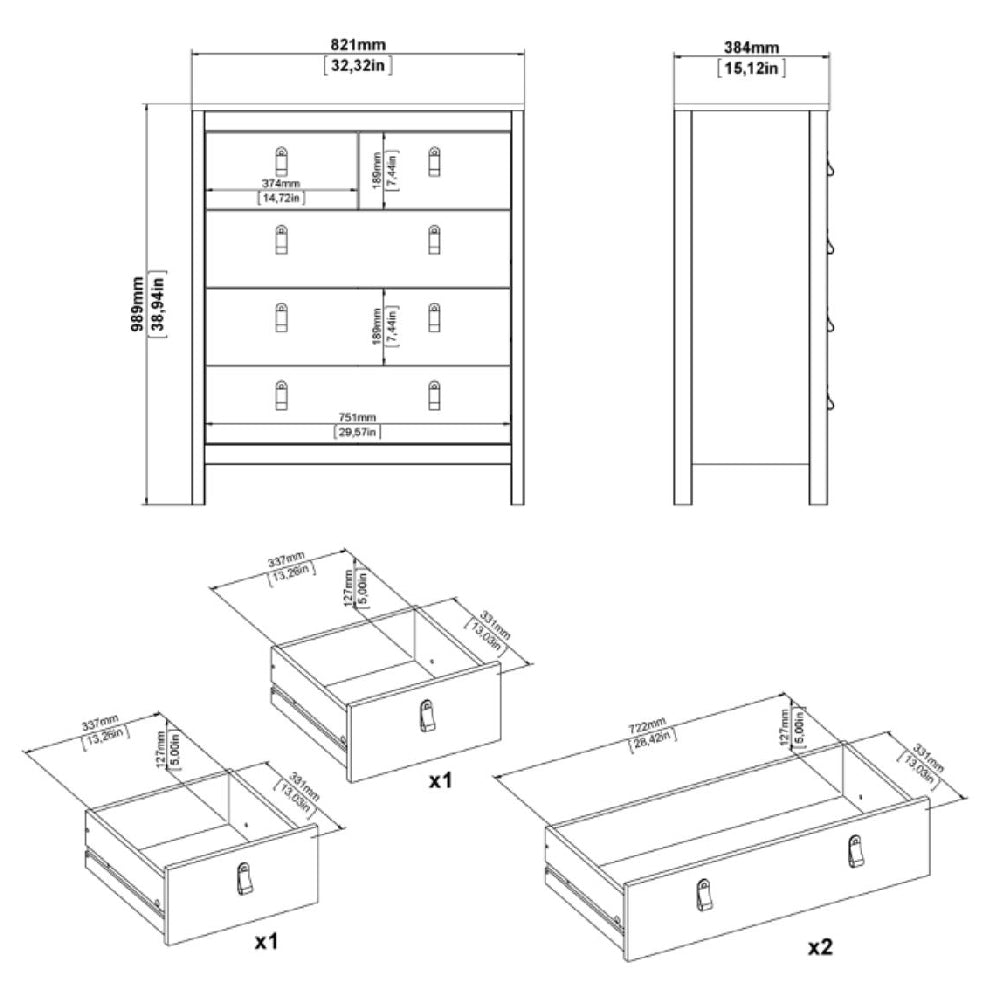 - Chest of Drawers: Height 98.9 cm × Width 82.1 cm × Depth 38.4 cm