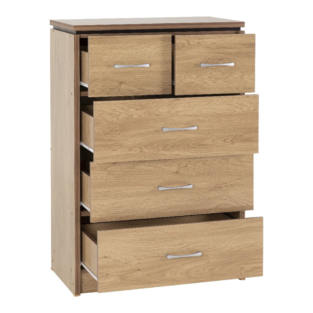 Constructed from durable wood with a natural oak finish, the Crieff chest is engineered for daily use. Smooth-running metal drawer mechanisms ensure consistent performance and ease of access over time.