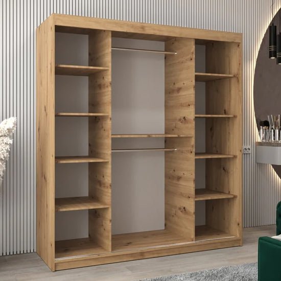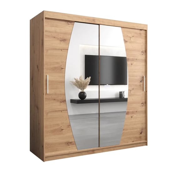 Introduce timeless elegance to your bedroom with the CHOICEWARDROBE Eden 180cm Oak Mirrored Sliding Door Wardrobe, a stunning blend of natural warmth and modern design. Finished in Artisan Oak with elegantly curved mirrored doors, this wardrobe adds a refined focal point to your interior while delivering exceptional storage efficiency.