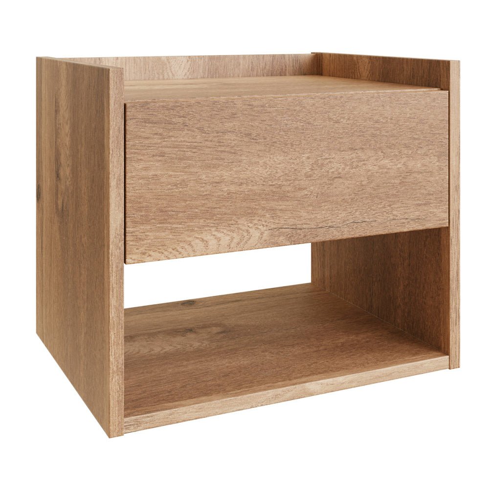 Each unit combines a single drawer with an open shelf below. The drawer provides enclosed storage for night-time essentials, while the open shelf allows easy access to books, devices, or decorative items. This arrangement supports practical bedside organisation without visual clutter.