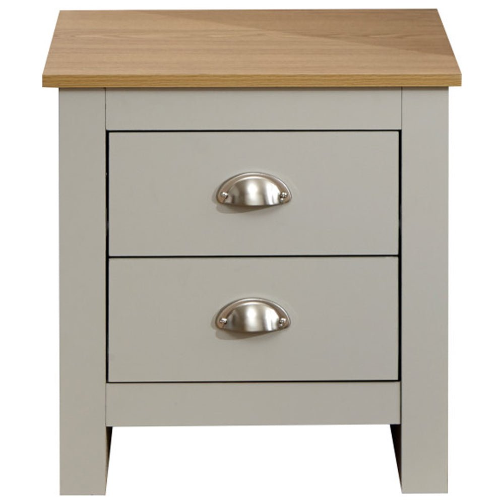 Loftus Wooden Bedside Cabinet With 2 Drawers In Grey And Oak 6 Contrasting Oak Effect Top